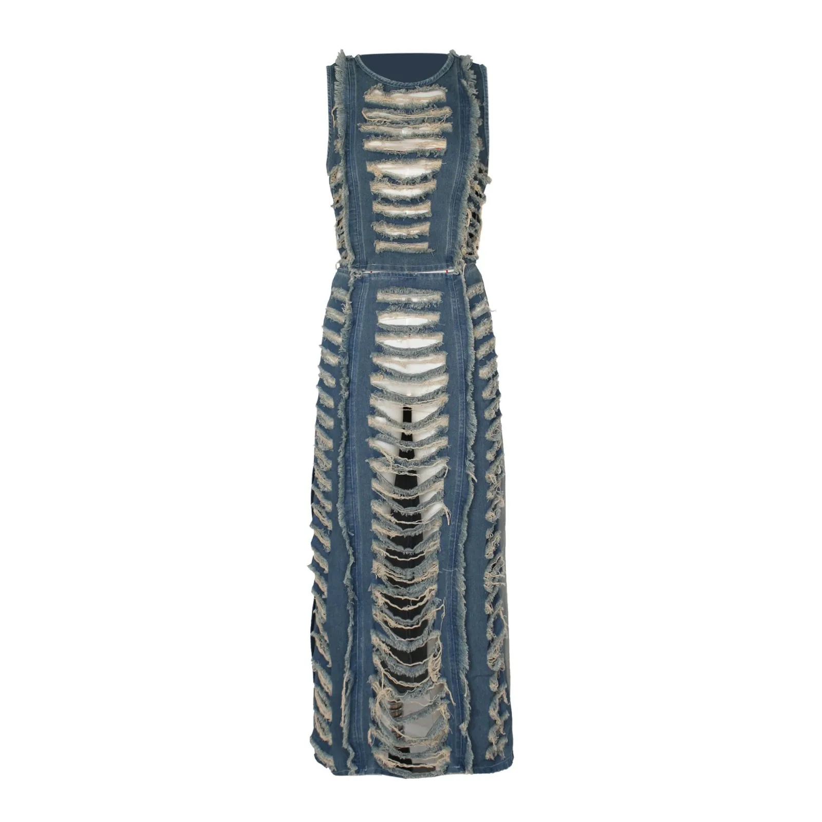 Streetwear Ripped Denim Set Crop Top & Slit Skirt
