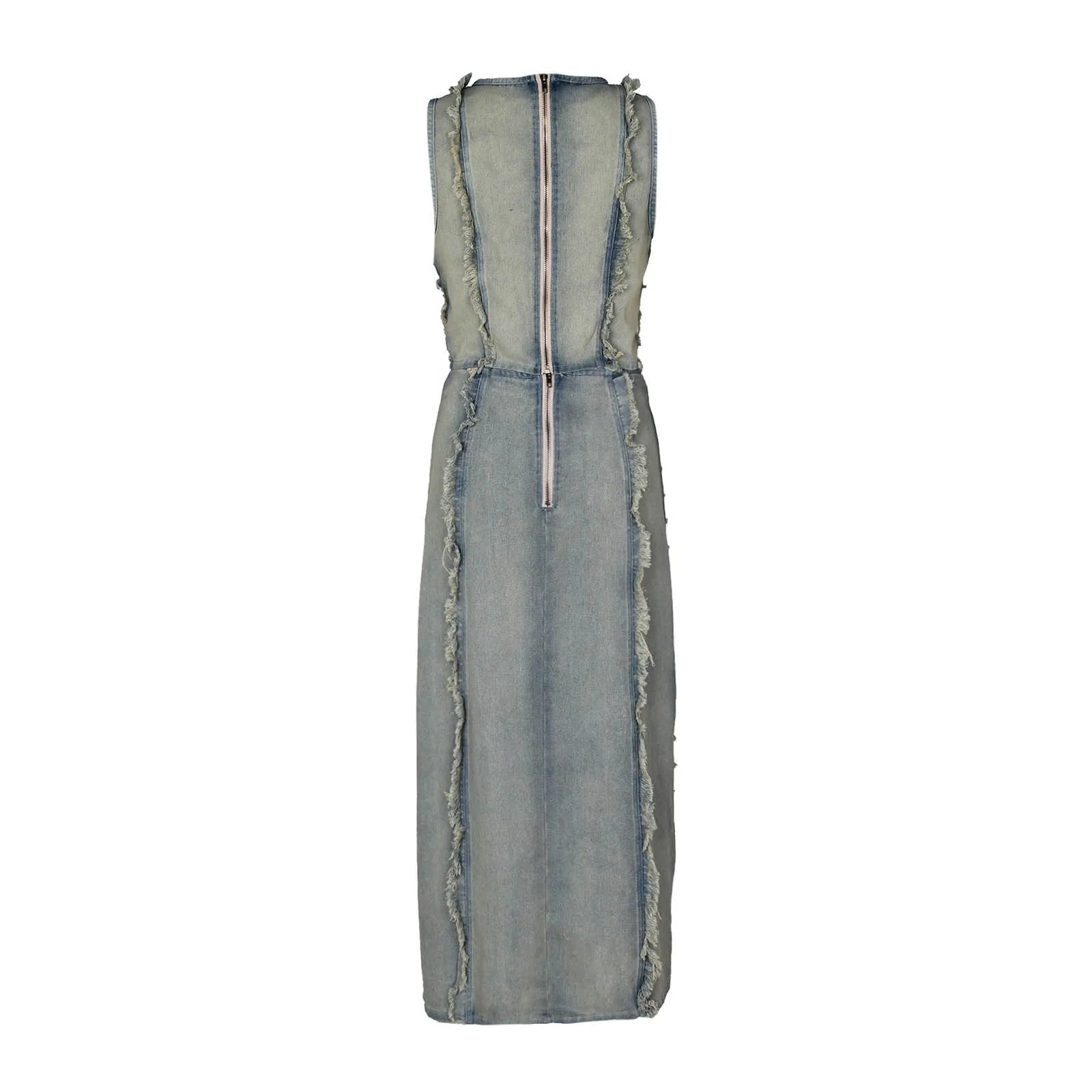 Women's denim set hand-worn vest with high slit denim skirt set